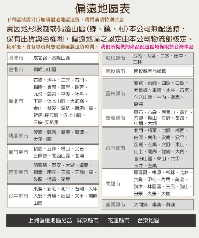 產品名稱:【綠活居】麥卡隆 台灣製半牛皮革獨立筒三人座沙發椅 產品尺寸: 三人座:(寬)204x(深)91x(高)90/ 公分 座墊高:45/座深46/公分 材質:松木實木骨架&椅身 皮革:台製牛皮皮革 腳座:防潮黑漆腳座 坐墊:獨立筒彈簧座包+高密度三層式泡棉+絲棉 ◎注意事項: 1.接單後,會有專員與您電聯確認送貨時間。 2.需以吊車吊運以當地吊車行情計,費用由消費者支付。 3.備註:本商品不含圖片上、家飾...等,情境圖之內容僅供參考。 4.請於配送人員到場時,檢查商品有無缺失,以免造成爭議。 5.允許的誤差尺寸範圍+-2%。 6.因拍攝燈光與電腦解析度瑩幕不同可能會造成實品與網頁上商品有些許色差,商品以收到實品為主。 ◎收貨與退貨: 1.實因特殊地型限制及(山區、濱海鄉、鎮、村、區)無法送貨時,本公司保有出貨與否之權利(下單後會由專人告知是否可配送)。 2.有電梯不收取費用! 無電梯樓層超過4樓以上(包含4樓)一樓層費用200元,現場支付給服務員。 3.超過鑑賞期,恕不接受退貨。 4.限非人為因素破壞毀損,才可退貨。 5.若退貨時,收件時間請與廠商協調,確保自己權益。 6.退貨時應保留贈品及附件完整(如有遺失部分,需酌收費用)。 ◎備註: .無回收服務。 .收貨與退貨:實因特殊地型限制及(山區、濱海鄉、鎮、村、區)無法送貨時,本公司保有出貨與否之權利(下單後會由專人告知是否可配送)。 .花蓮(縣市)、台東(縣市)、屏東(縣市場及其它縣市屬於山區、濱海鄉、鎮、村地區無配送服務,如您有需求,則需另外收取運費。(您可直接訂購,後續由廠商報價。) ※由於加價配送服務為一次消耗性商品,若有退換貨等情形加購之運費恕無法退還 ※運費報價皆為單趟計算。 ※使用加價配送地區,收貨時間會比一般地區再增加10個工作天。